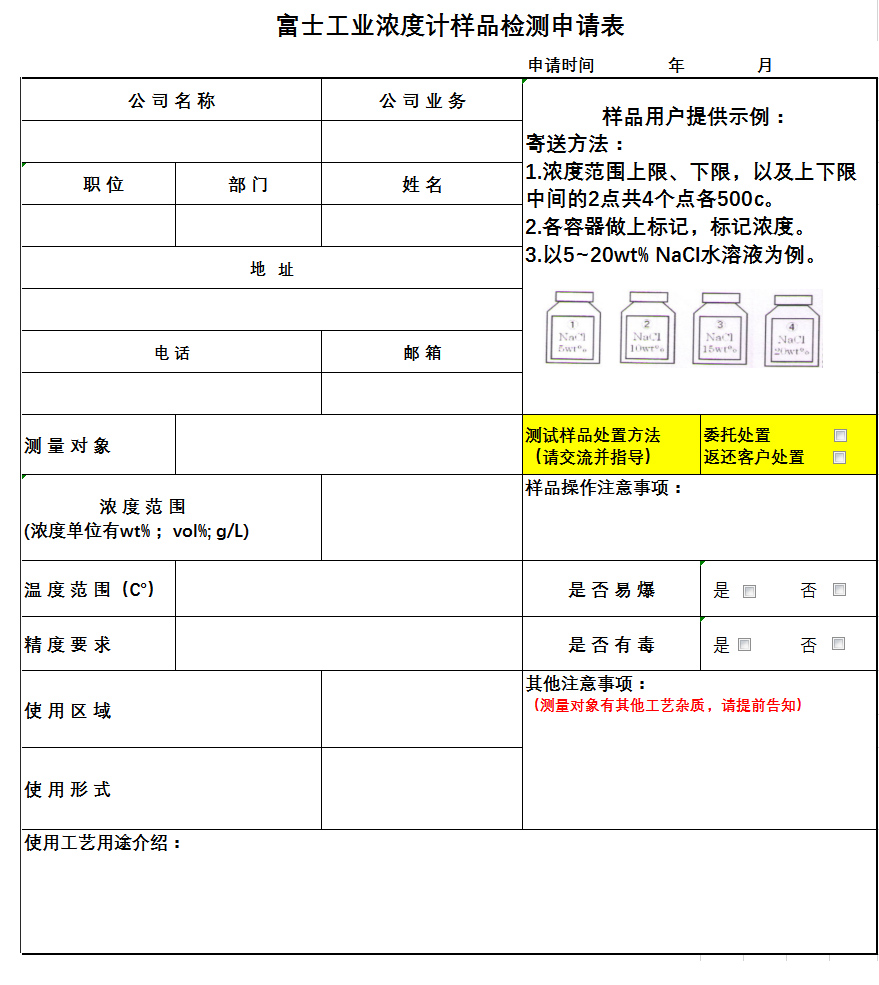 點(diǎn)擊下載 富士工業(yè)濃度計(jì)樣品檢測(cè)申請(qǐng)表.docx